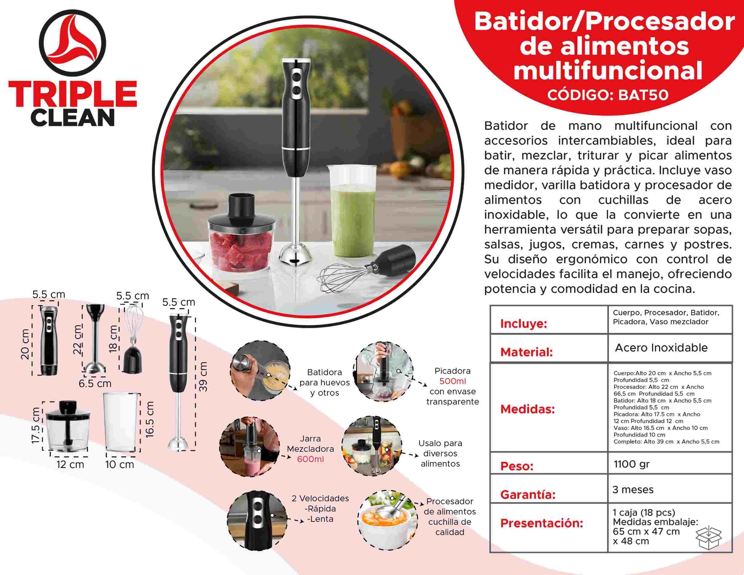 Batidor/Procesador de alimentos multifuncional