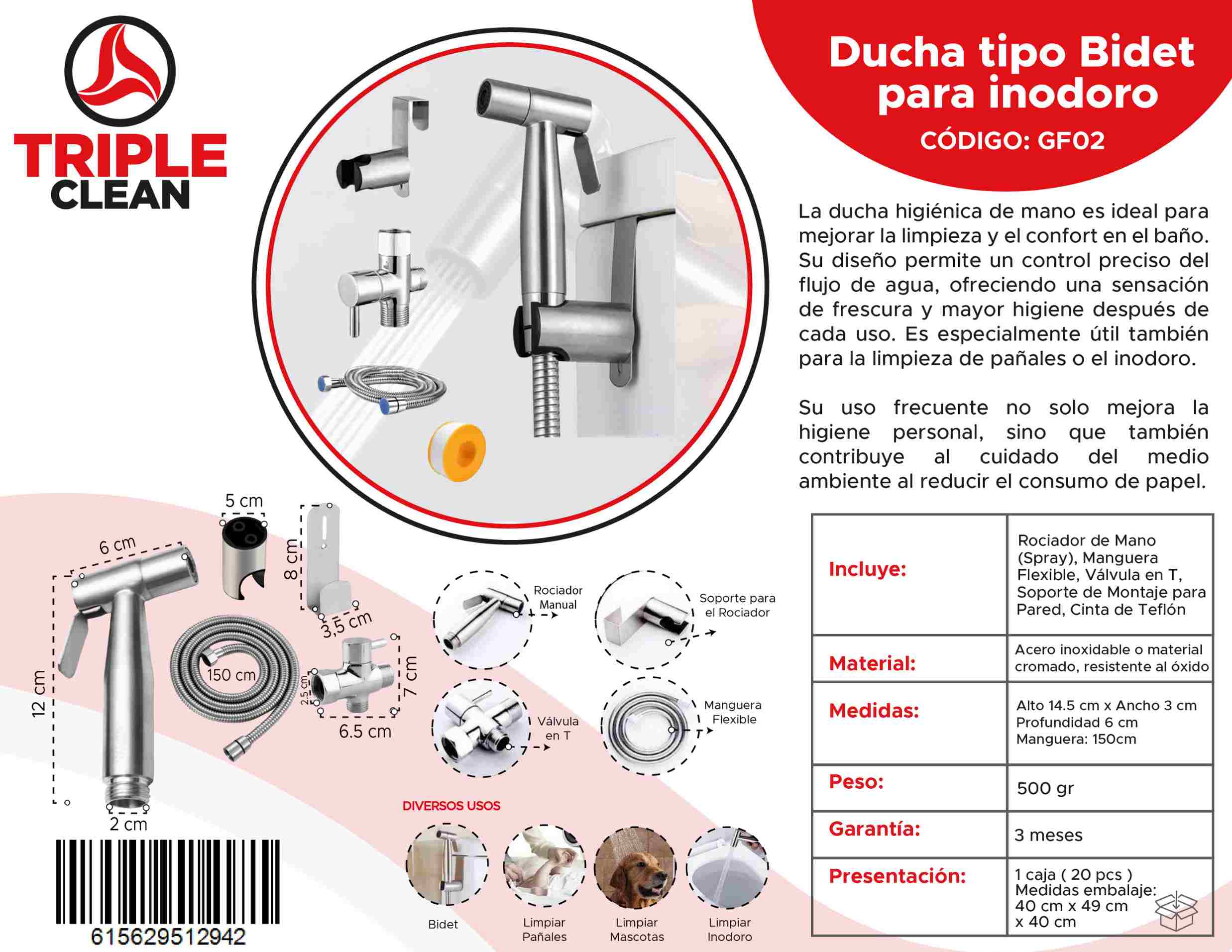 Ideal para mejorar la limpieza y el confort en el baño. Su diseño permite un control preciso del flujo de agua, ofreciendo mayor higiene después de cada uso. Es especialmente útil también para la limpieza de pañales o el inodoro.
