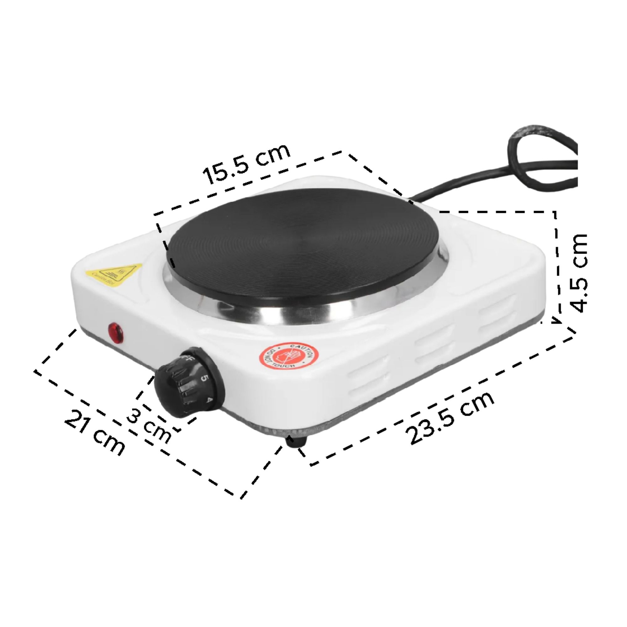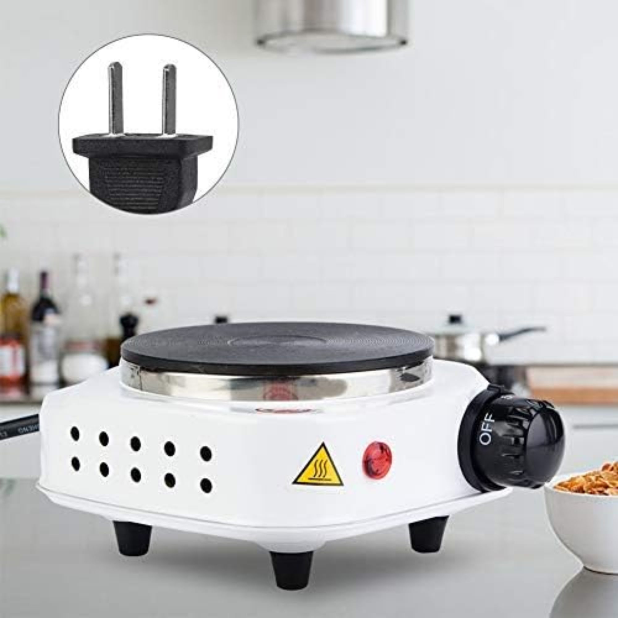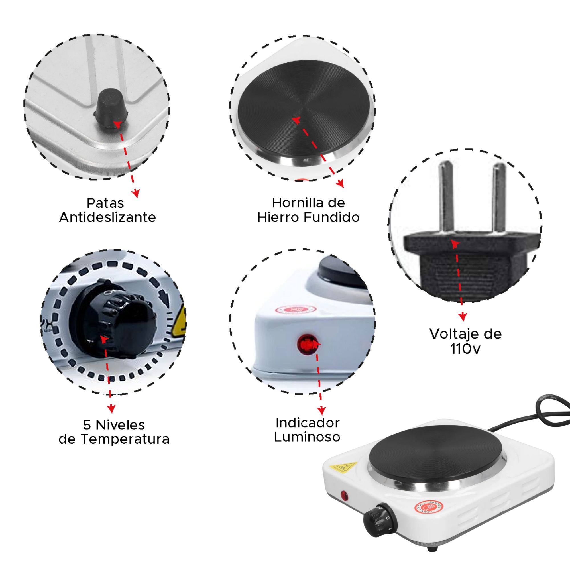 Es una excelente opción para cocinar en espacios reducidos, como oficinas, dormitorios, campamentos o viajes. Cuenta con una base metálica resistente, una placa calefactora de hierro fundido que distribuye el calor de manera uniforme, y un botón regulador de temperatura con múltiples