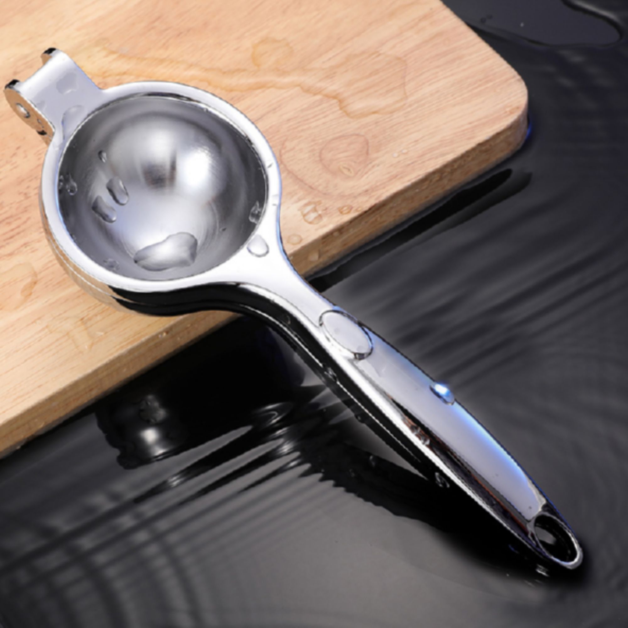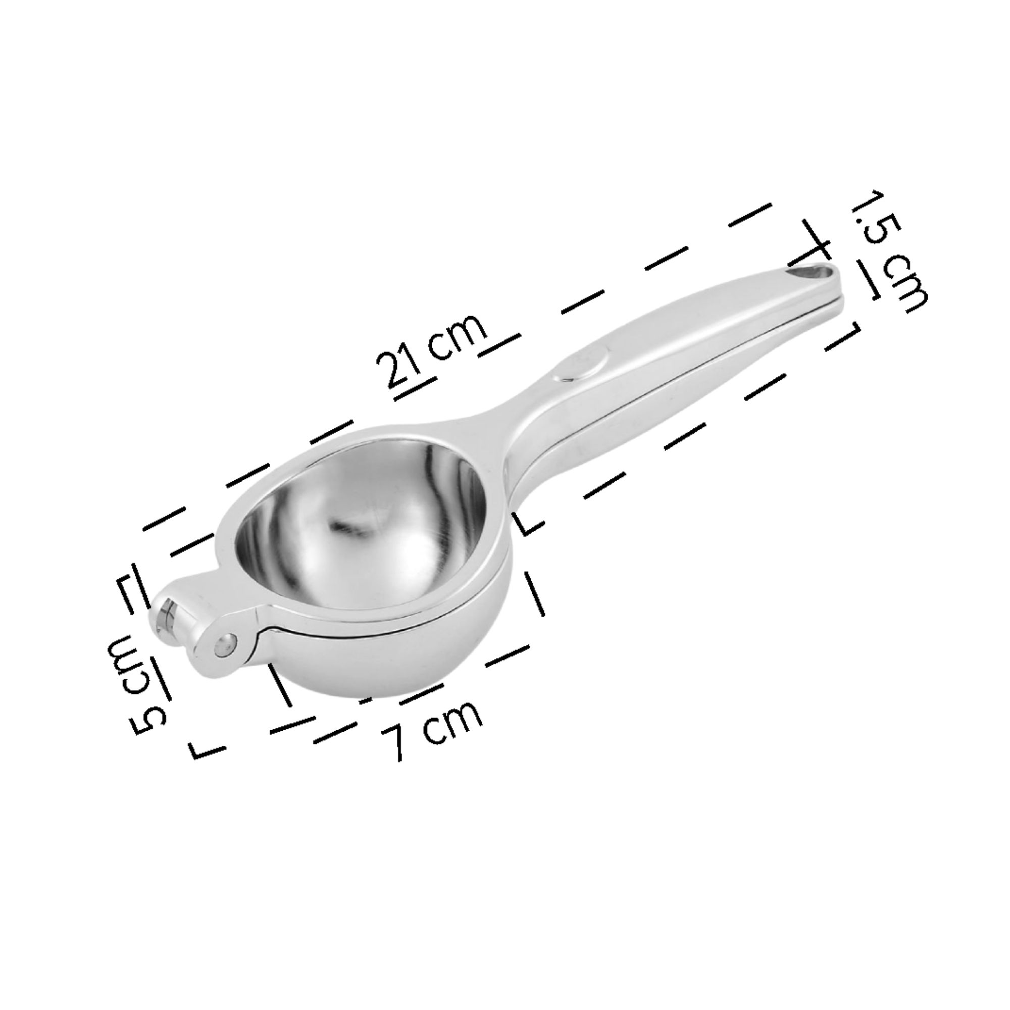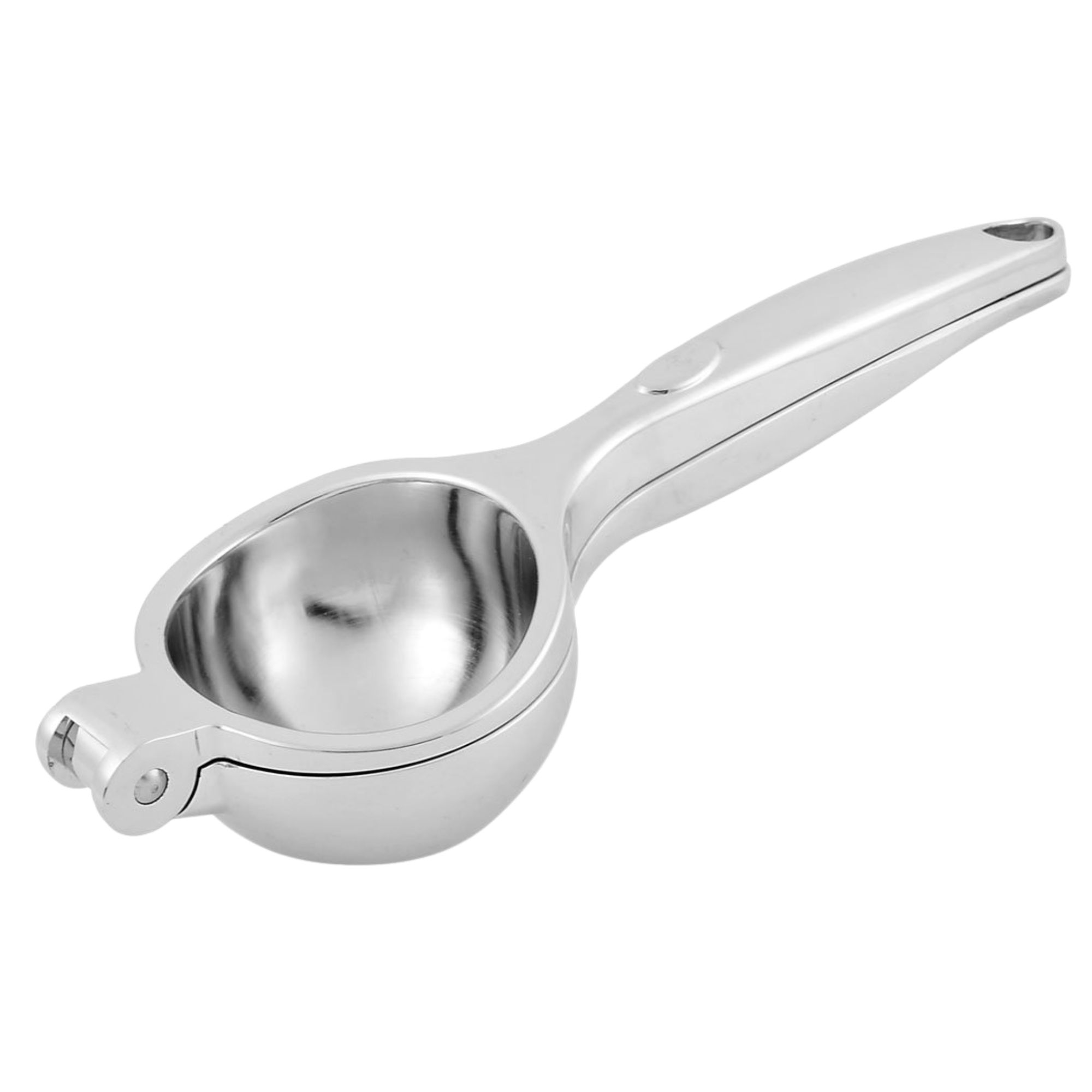Exprimidor manual de acero inoxidable, resistente y fácil de usar, ideal para extraer jugo de limones, naranjas pequeñas y cítricos de forma rápida y sin esfuerzo.
