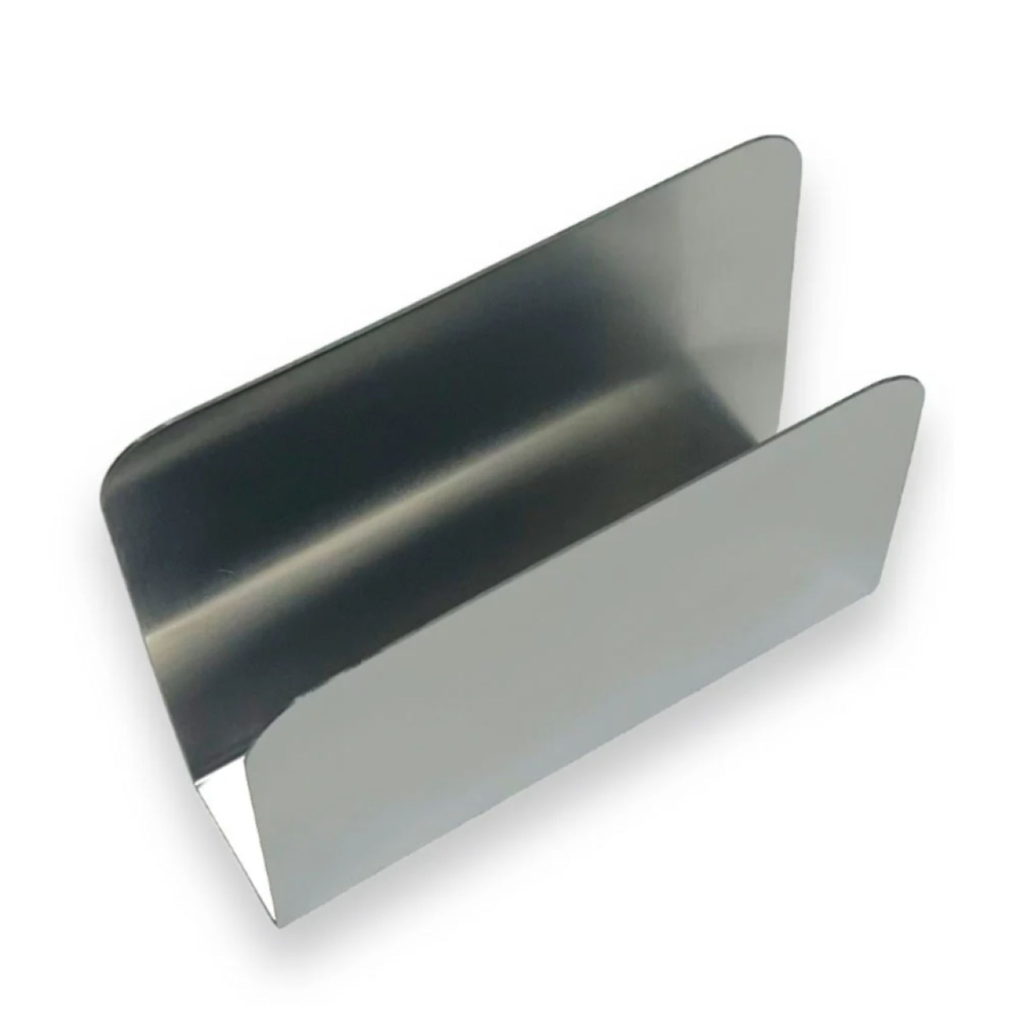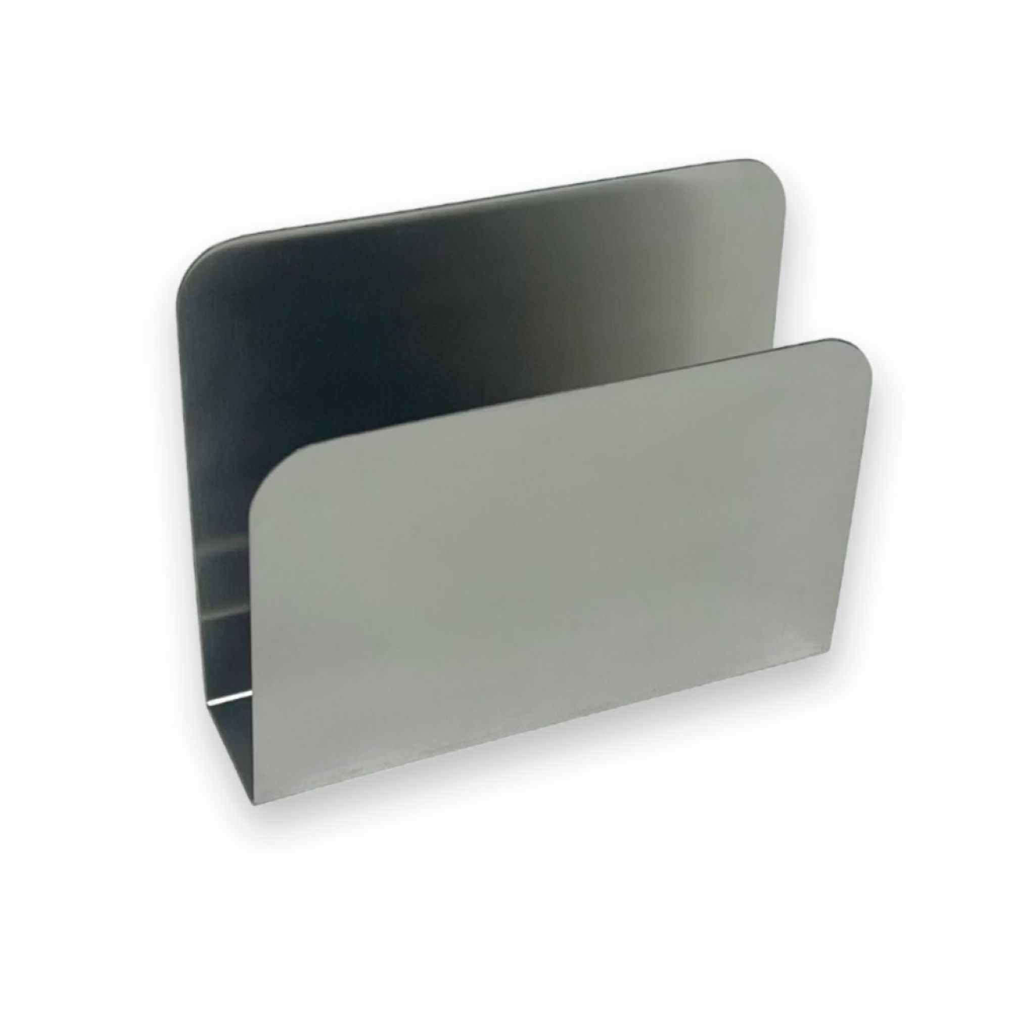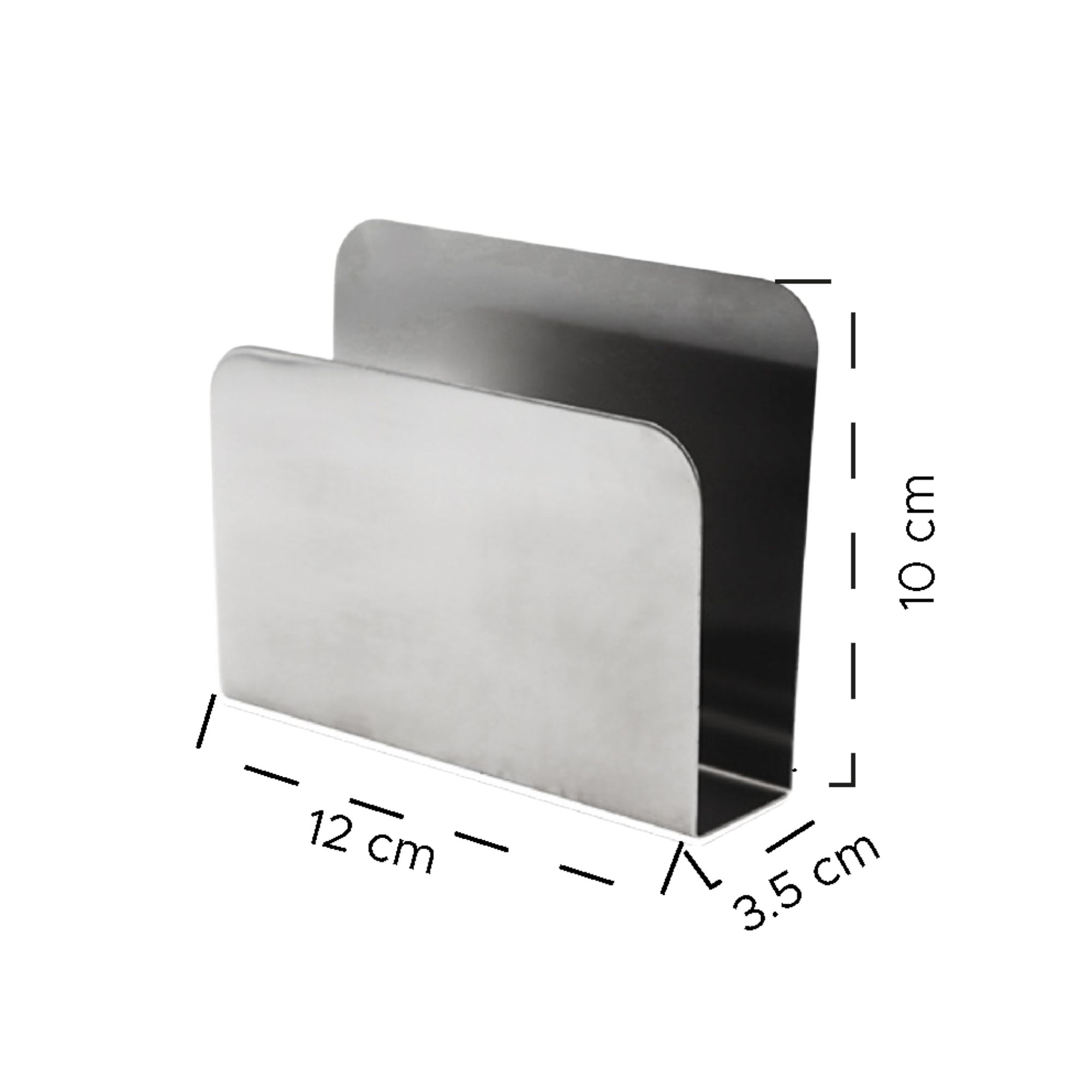 Porta servilletas de acero inoxidable con diseño moderno y compacto, ideal para mantener servilletas organizadas y al alcance en la cocina, comedor u oficina. Resistente, elegante y fácil de limpiar.
