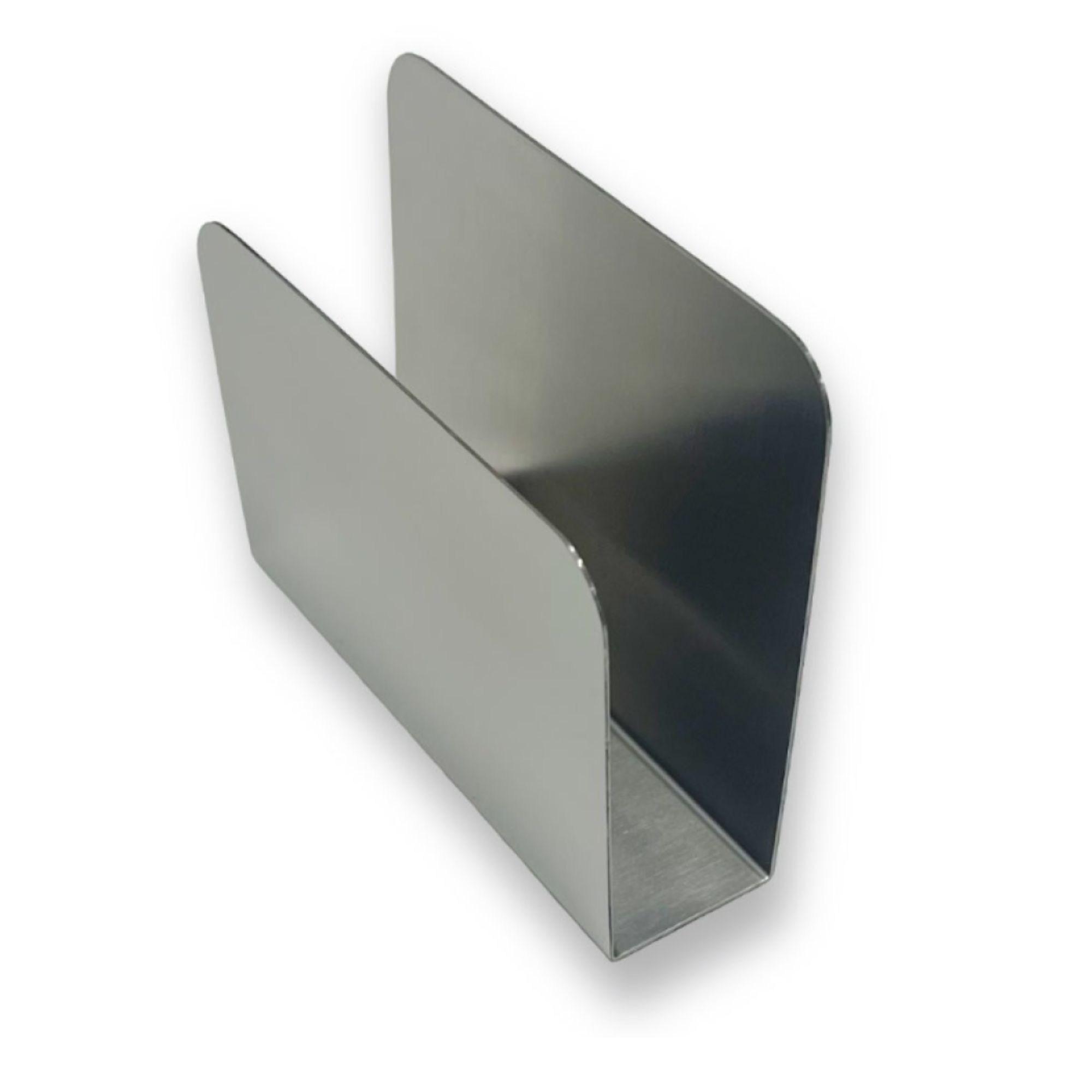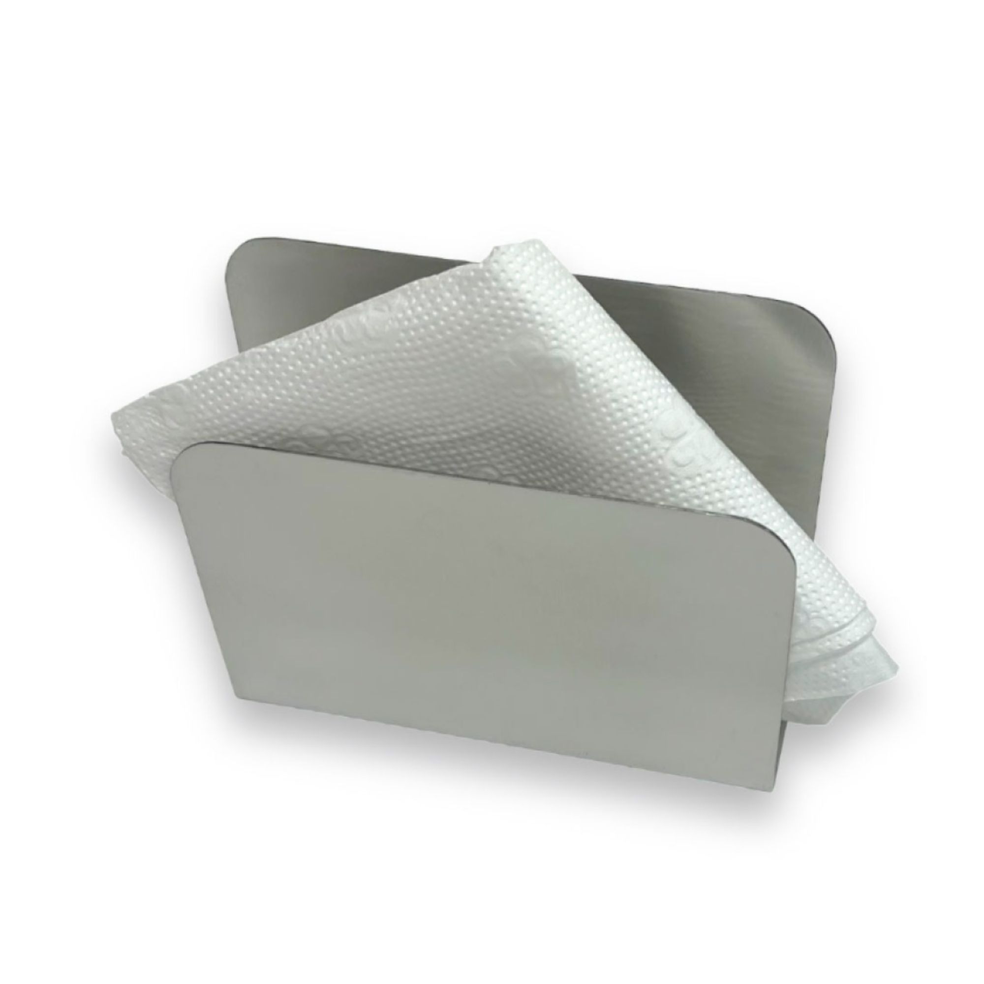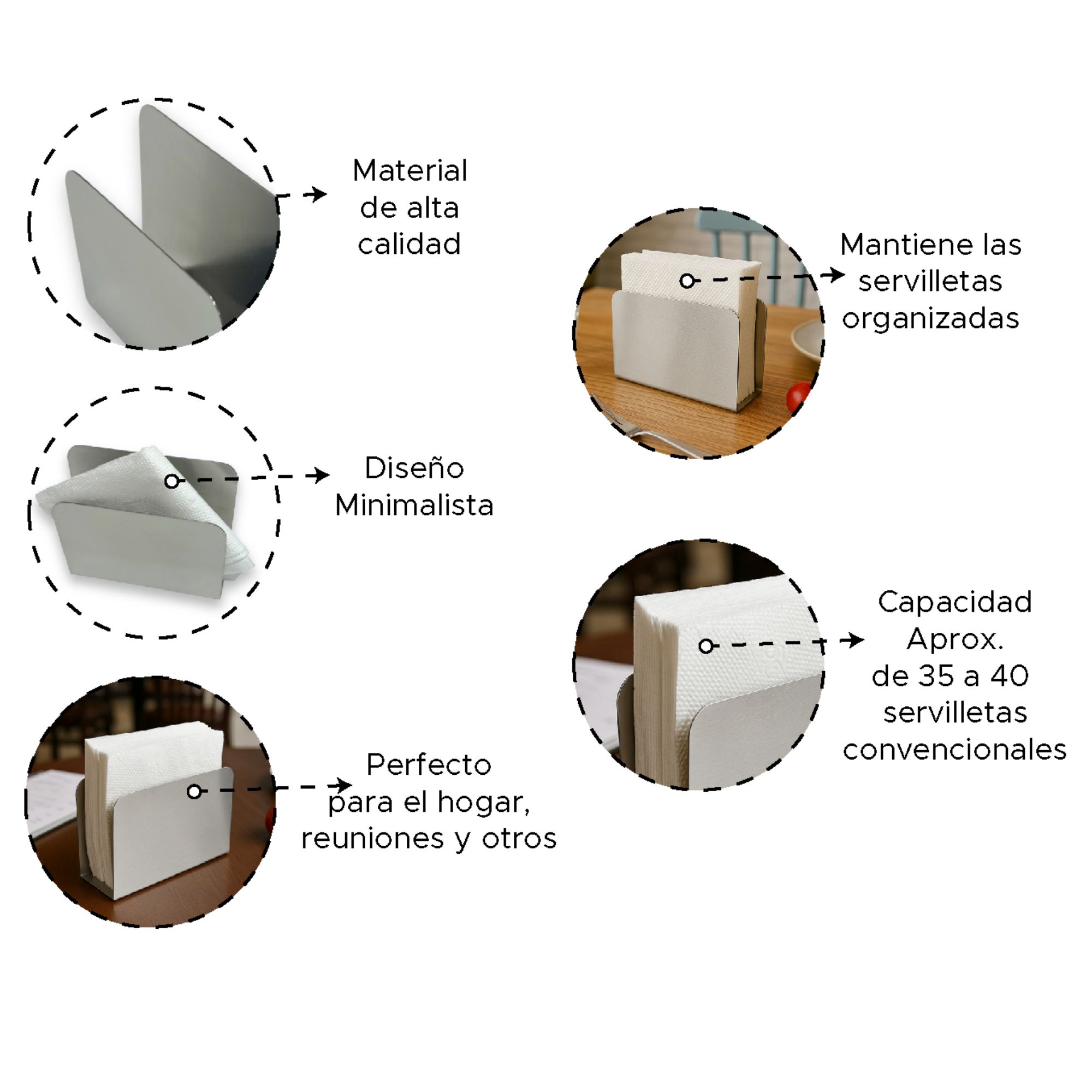 Porta servilletas de acero inoxidable con diseño moderno y compacto, ideal para mantener servilletas organizadas y al alcance en la cocina, comedor u oficina. Resistente, elegante y fácil de limpiar.