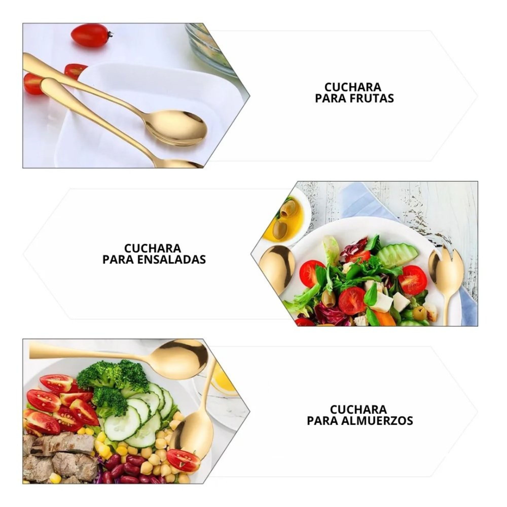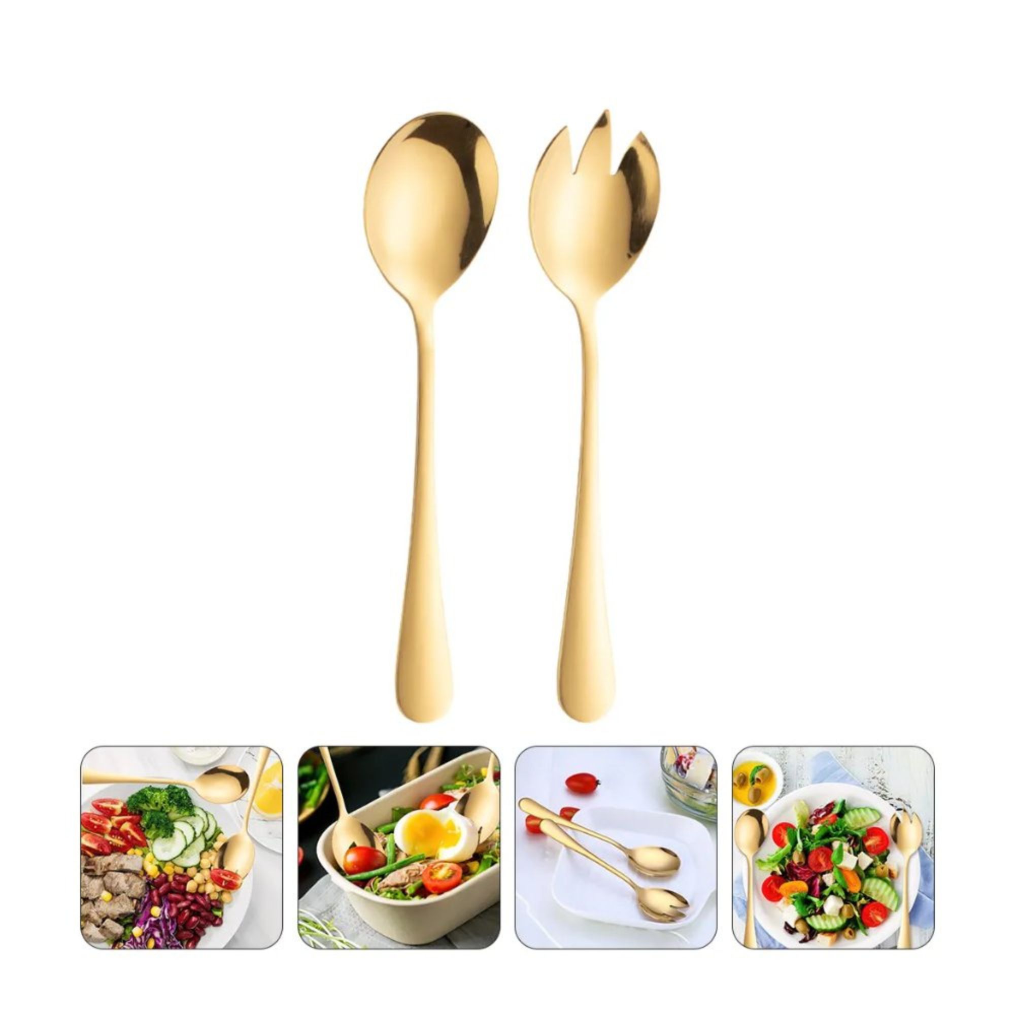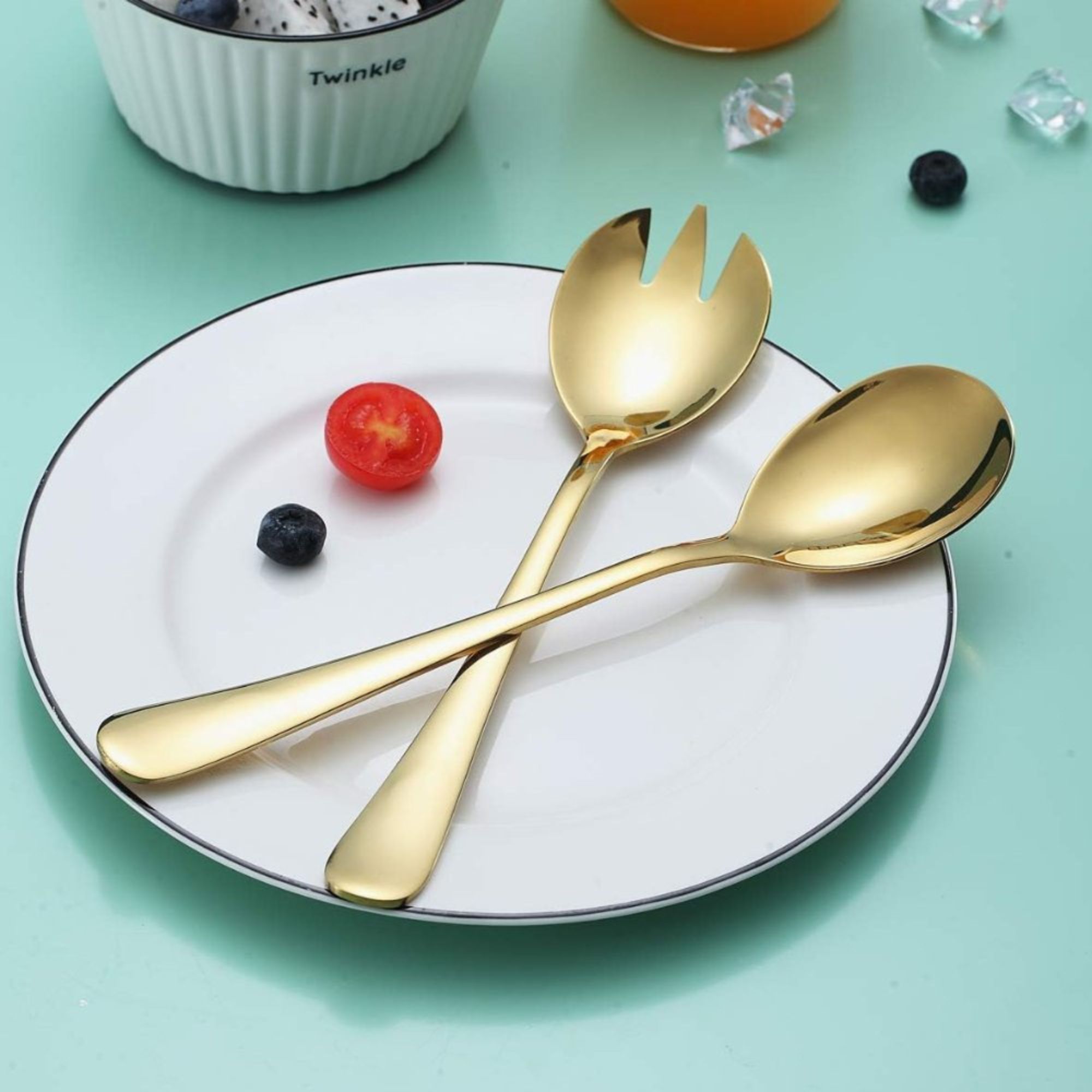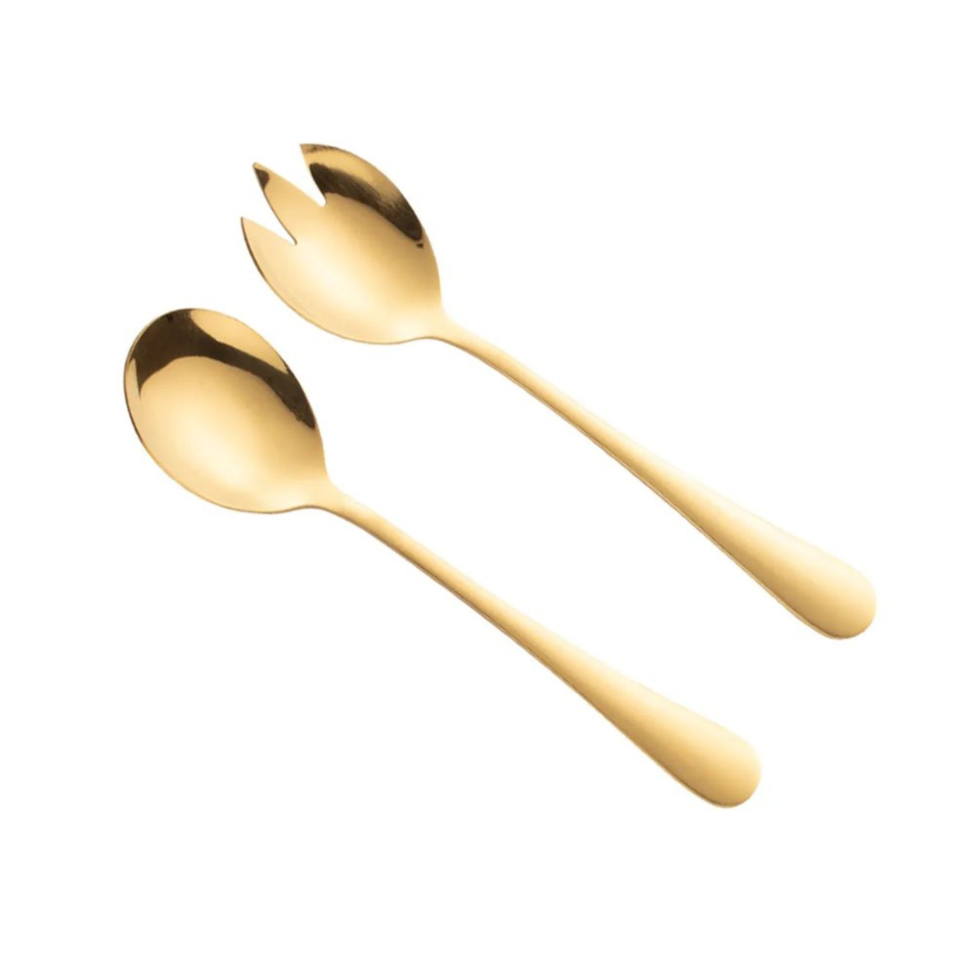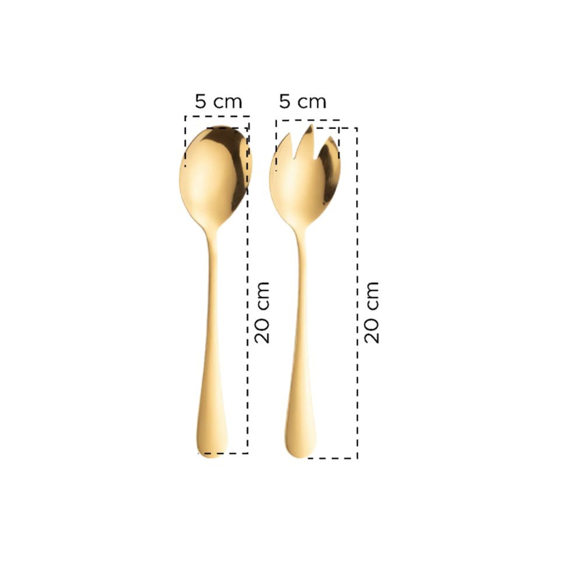 Set de cubiertos para ensalada de 2 piezas, compuesto por cuchara y tenedor de servir. Fabricados en acero inoxidable, ofrecen resistencia, brillo y elegancia.