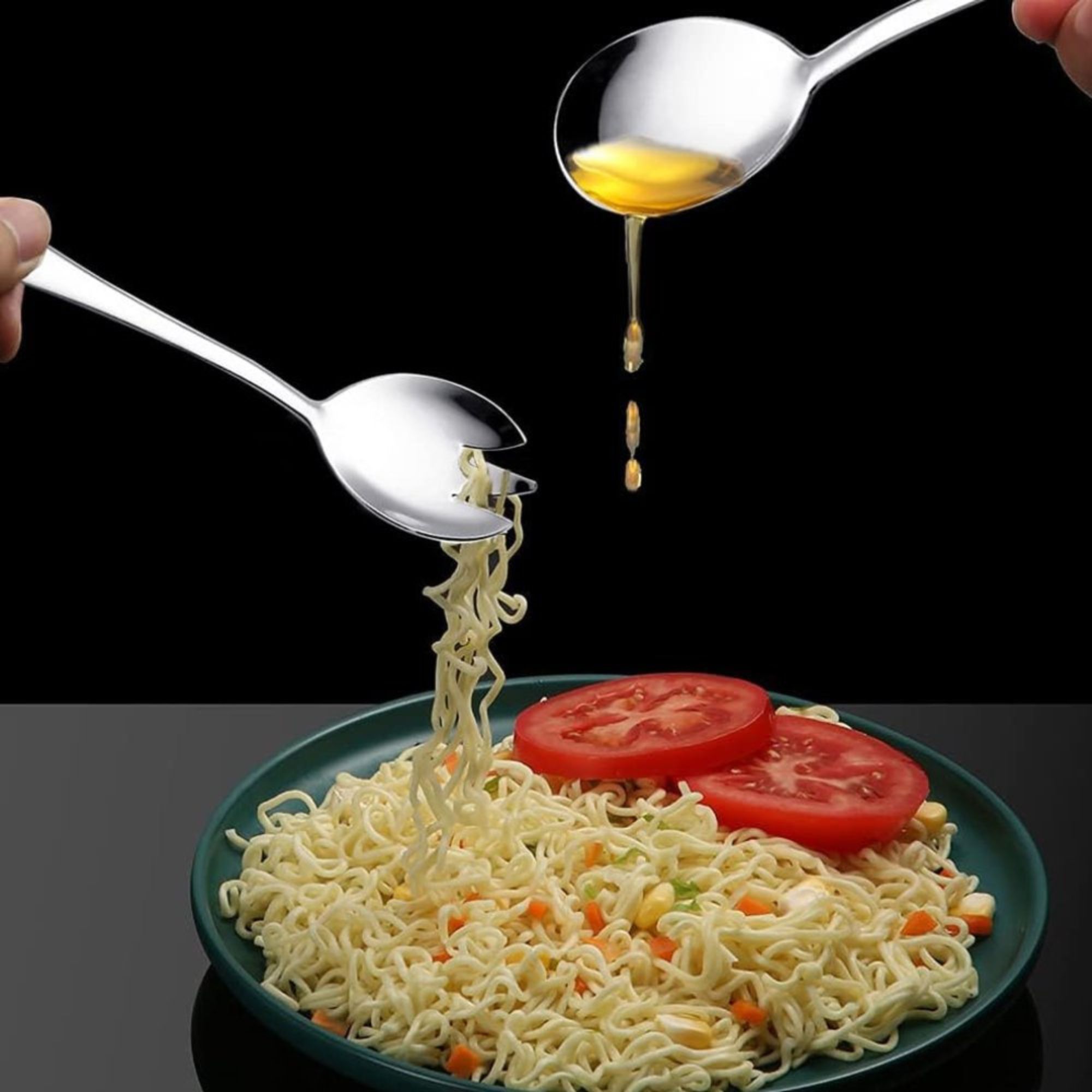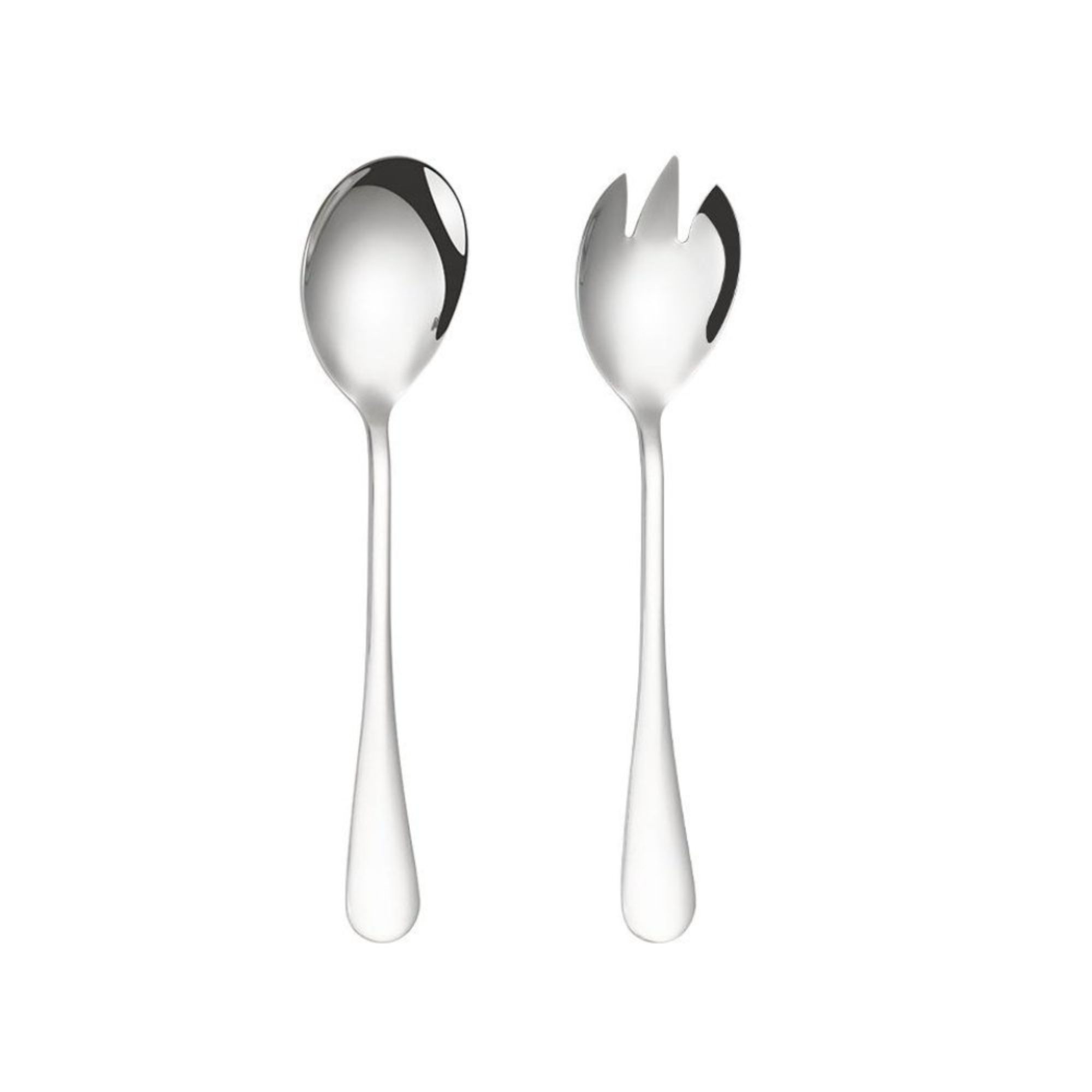 Set de cubiertos para ensalada de 2 piezas, compuesto por cuchara y tenedor de servir. Fabricados en acero inoxidable, ofrecen resistencia, brillo y elegancia.