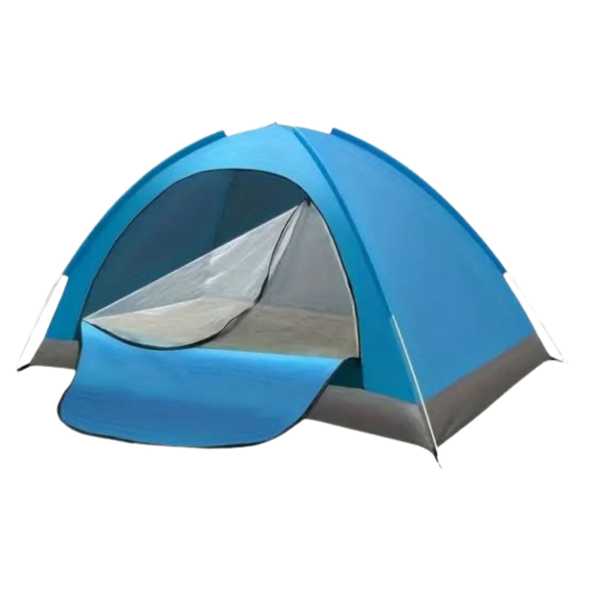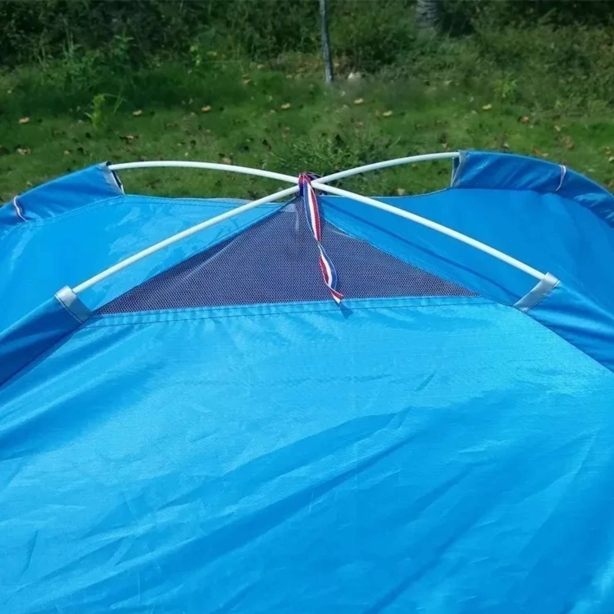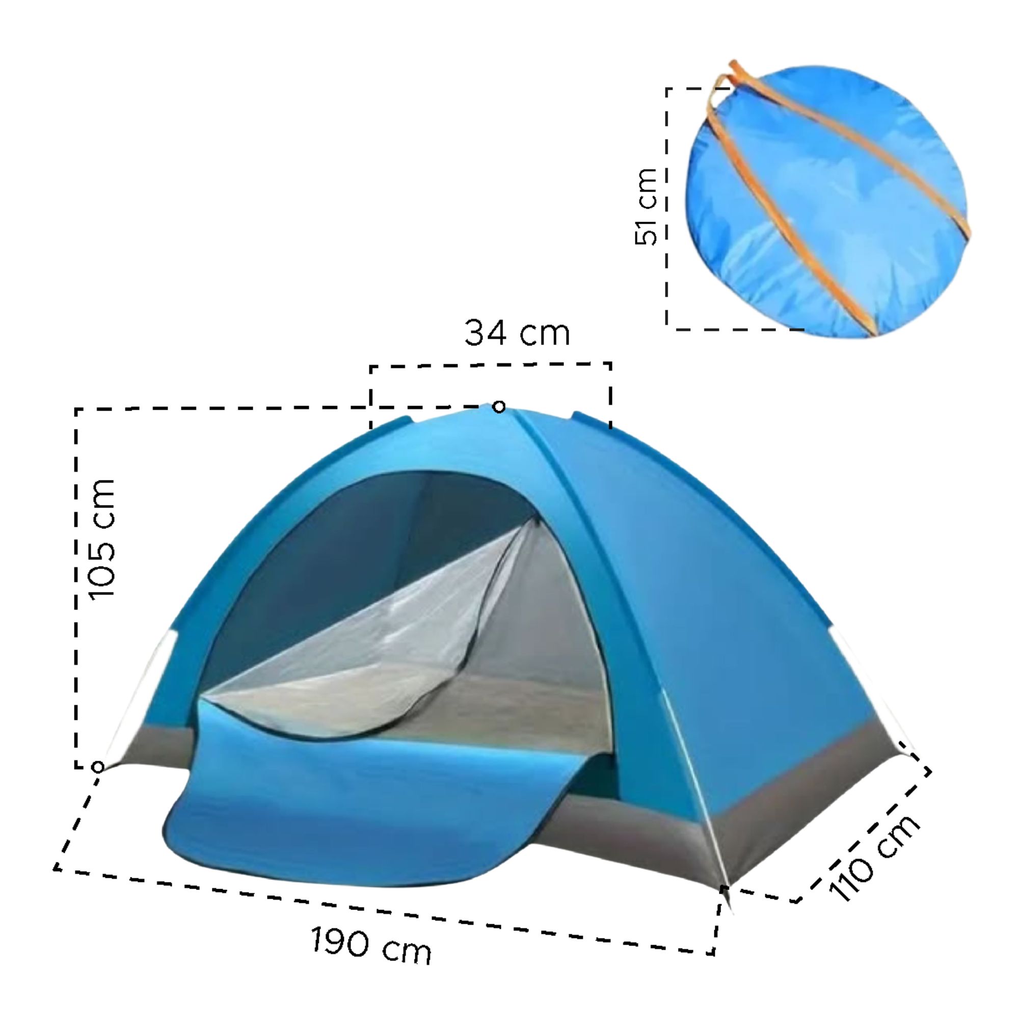 Fabricada con material resistente y ligero, ofrece protección básica contra el viento y el sol. Color: azul claro incluye una entrada amplia tipo arco que facilita el acceso y mejora la ventilación. Con lona antimosquitos.